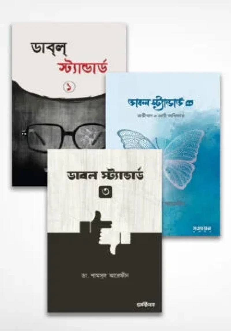 ডাবল স্ট্যান্ডার্ড-২.০: ডাবল স্ট্যান্ডার্ড এর দ্বিতীয় পর্ব। লেখক এ বইতে দেখাতে চেষ্টা করেছেন পশ্চিমা সমাজের সাথে ইসলামের আদর্শিক দ্বন্দ্বটা কোথায়, কেন সবাই পশ্চিমের সাথে একাকার হতে পারছে, আর ইসলাম পারছে না। এছাড়া দেখাতে চেয়েছেন ইসলামের ব্যবহারিক প্রয়োগটা কেমন ছিল। পশ্চিমা আদর্শের ইতিহাস আর ইসলামের ইতিহাসের একটা তুলনামূলক চিত্র পাঠক পাবেন।ডাবল স্ট্যান্ডার্ড-৩: ২০১৭ সালে ডাবল স্ট্যান্ডার্ড-১ এর পাঠকপ্রিয়তার পর নারীবিষয়ক অভিযোগগুলো নিয়ে ২০২০ সালে আসে ডাবল স্ট্যান্ডার্ড-২। এবার আরও কিছু অভিযোগ নিয়ে একই ধাঁচে এলো ডাবল স্ট্যান্ডার্ড-৩। বইয়ে আলোচিত বিষয়গুলোর কয়েকটি সরাসরি ঈমানের সাথে সম্পর্কিত। যেমন কুরআন-হাদিস কীভাবে সংকলন হয়েছে, সেটা জানাটা ঈমানের অংশ। ঠিক কীসের উপর আমরা ঈমান এনেছি, সেটা কতটুকু বিশুদ্ধ, এ ব্যাপারে সংশয় একেবারে ঈমানে গিয়ে কোপ দেয়। যে জান্নাতের স্বপ্ন আমরা দেখি, তার ব্যাপারে সংশয় থাকাটা ঈমানের রোগ। জান্নাতের জীবন্ত চিত্র, তাজা অনুভূতি থাকাটা ঈমানের স্বাদ এনে দেয়। এরকম কিছু মৌলিক বিষয় নিয়ে আলাপ করেছি এবার। গল্পের ছাঁচে ফেলে যুক্তিতর্কগুলোকে সুস্বাদু করবার সেই চিরচেনা ভঙ্গিতে।